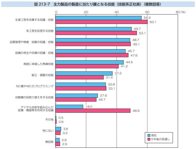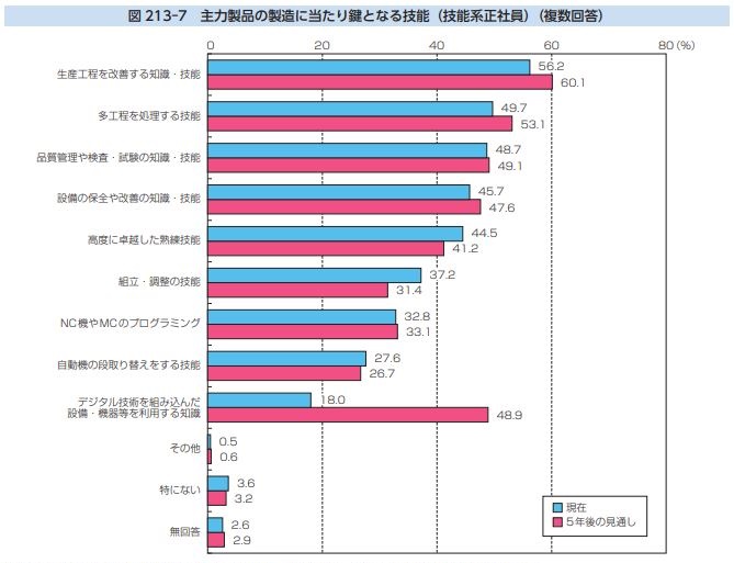 製造基盤白書(2021年版ものづくり白書)によれば、生産工程の改善や多工程を処理する技能に次いで、品質管理に関する知識・技能が重要視されています。高い品質を維持するためには、品質管理部門の高度な知識や技能が必要不可欠です。