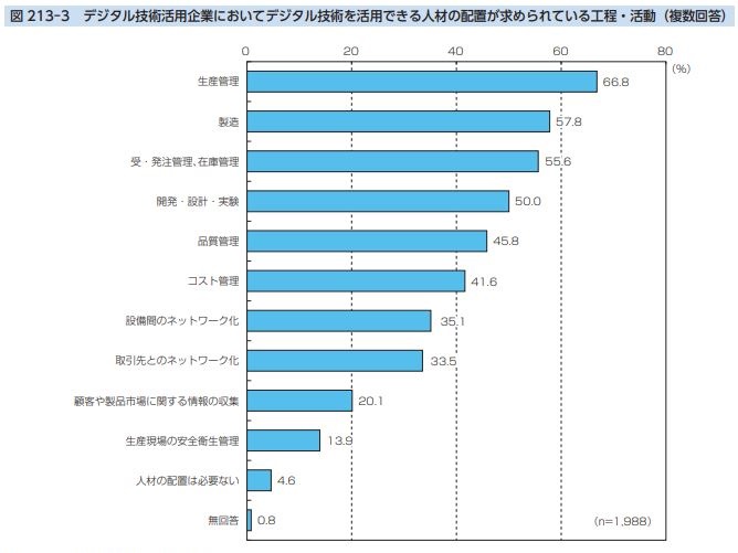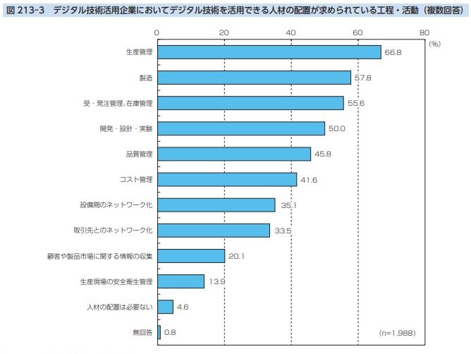 そのような課題を解決するものとして期待されているのが、機械学習をはじめとしたAI技術の活用です。そのためには、デジタル技術に長けた人材が必要不可欠となります。品質管理においても、昨今の大きな潮流となっているDX推進のなかで、デジタル技術が活用できる人材の配置が求められています。2021年版ものづくり白書によると、全体の45.8%もの企業が、品質管理にデジタル技術を活用できる人材を求めていることも明らかになっています。