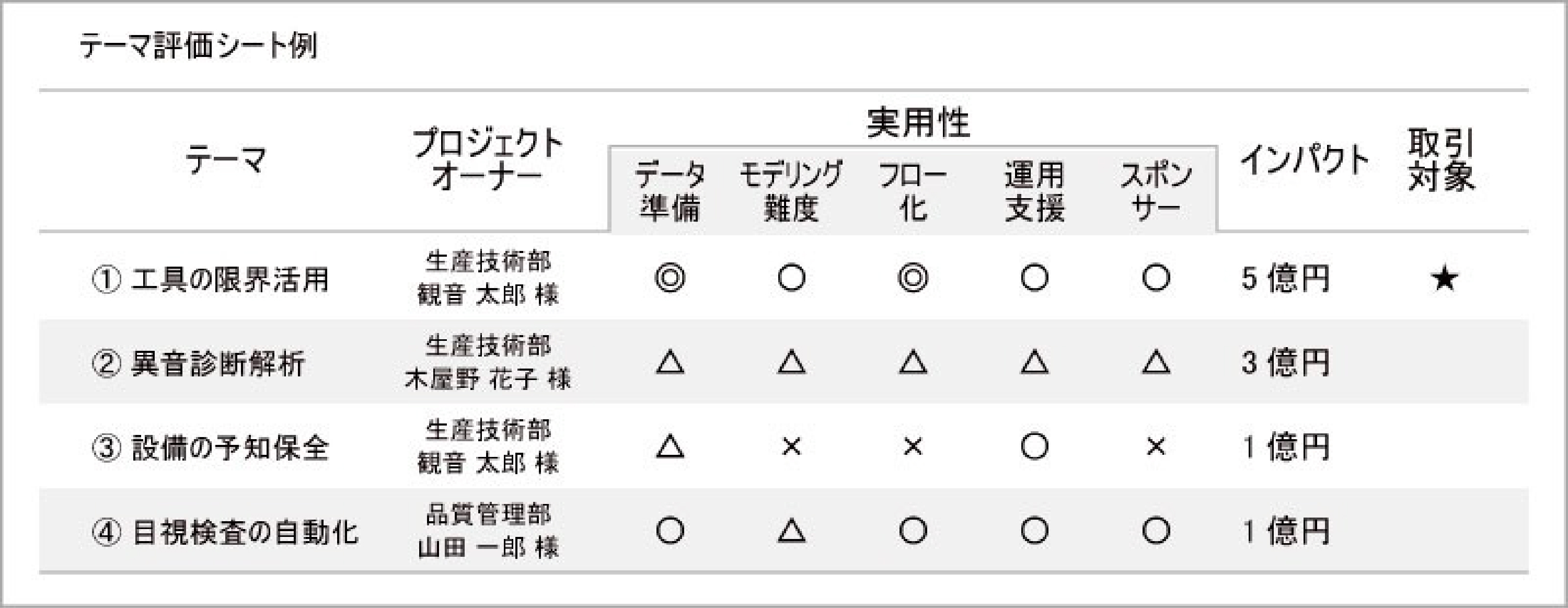 AIは何でもできる魔法の杖ではないため、大きなチャレンジテーマを掲げながらも、地に足の着いた部分からスタートし、成功体験を積んでいくことが重要です。日々の活動において、実現性と、それを改善したことで得られるビジネスインパクトの両軸でテーマを設定していくことをまずは考えていきたいところです。