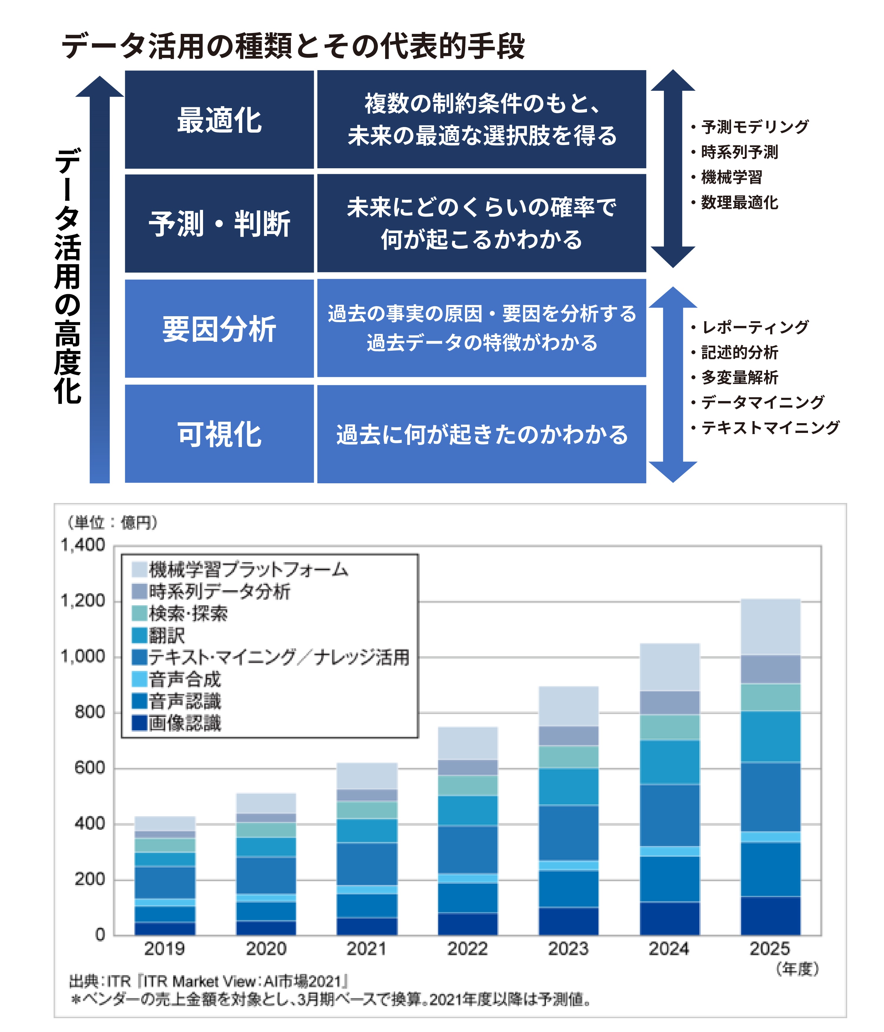 機械学習プラットフォームは大きく成長が期待されており、AI関連の市場のなかでも、売上金額の伸び率が最も高い分野となっています。