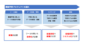 テーマの設定以外にも、機械学習ではデータの前処理や、予測モデルの構築などにも技術の習得や経験が必要です。加えて、実際に作成された予測モデルを運用していくためには、技術習得やシステム化が欠かせません。これらをすべてDX推進部門のメンバーだけで行っていくのは至難の業であり、経験豊富なパートナーを有効に活用していくことが、成功の近道と言えるでしょう。