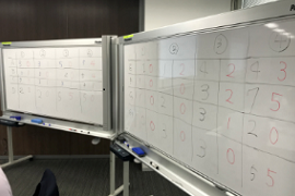 「計画」では、チームとしてどのような飛行機を作るのかを話し合っていただき、更には、紙飛行機を何機飛ばすことが出来るか予測数値を立てていただきました。「実施」では、「計画」で決めた紙飛行機を実際に作って飛ばし、3m以上飛んだ紙飛行機の数を数えていただきました。「ふりかえり」では「実施」内容を振り返って、次のスプリントでより多くの紙飛行機をとばすためにはどのように改善すべきか、また計画で立てた予測数値と実施数値についてなぜ相違が生まれたか等を話し合って頂きました。