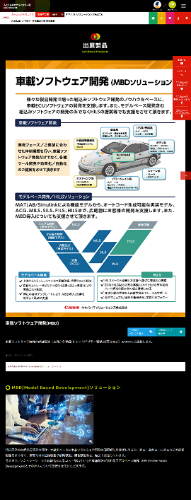 当社は複合機、デジタルカメラ等のキヤノン製品はもとより、産業機器、医療機器といった様々な製品開発の支援を行っており、一つの業界に留まらない技術や経験、ノウハウが蓄積されています。これらを車載開発支援という形でお客さまの車づくりをサポートいたします。
