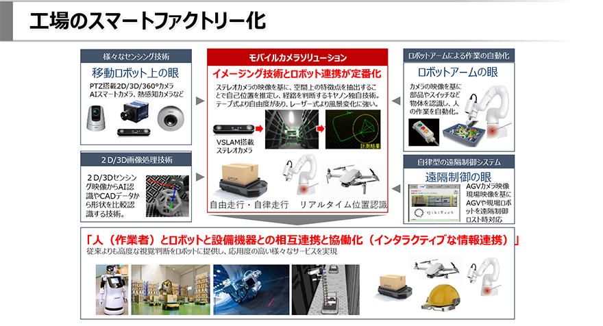 スマート社会の実現に向けた取り組みとして、AGV(Automatic Guided Vehicle=無人搬送車)やAMR(Autonomous Mobile Robot=自律移動ロボット)、ドローン、人や物体などを認識して駆動するサービスロボットなどを活用した工場や物流、商業施設などでの自動化や無人化が進められています。
