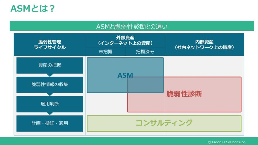 サイバー攻撃対策として今注目のASM、キヤノンITソリューションズが提供するASMサービスをご紹介