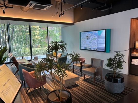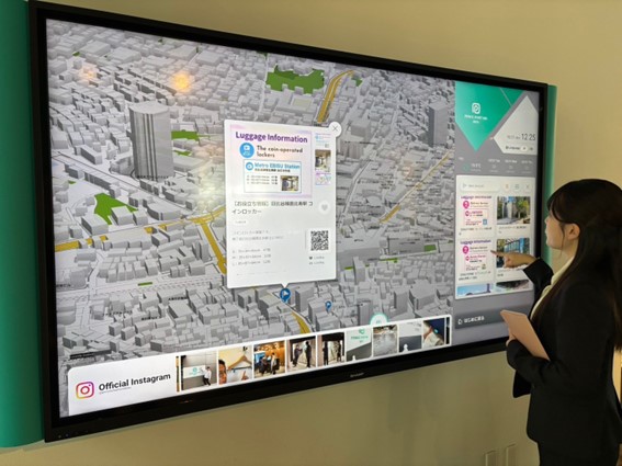 周辺のレストランや観光情報は、ロビーに設置されたマップ型デジタルサイネージで検索できます。これにより、フロントやコンシェルジュに尋ねなくても、好きな時に必要な情報を得ることができます。