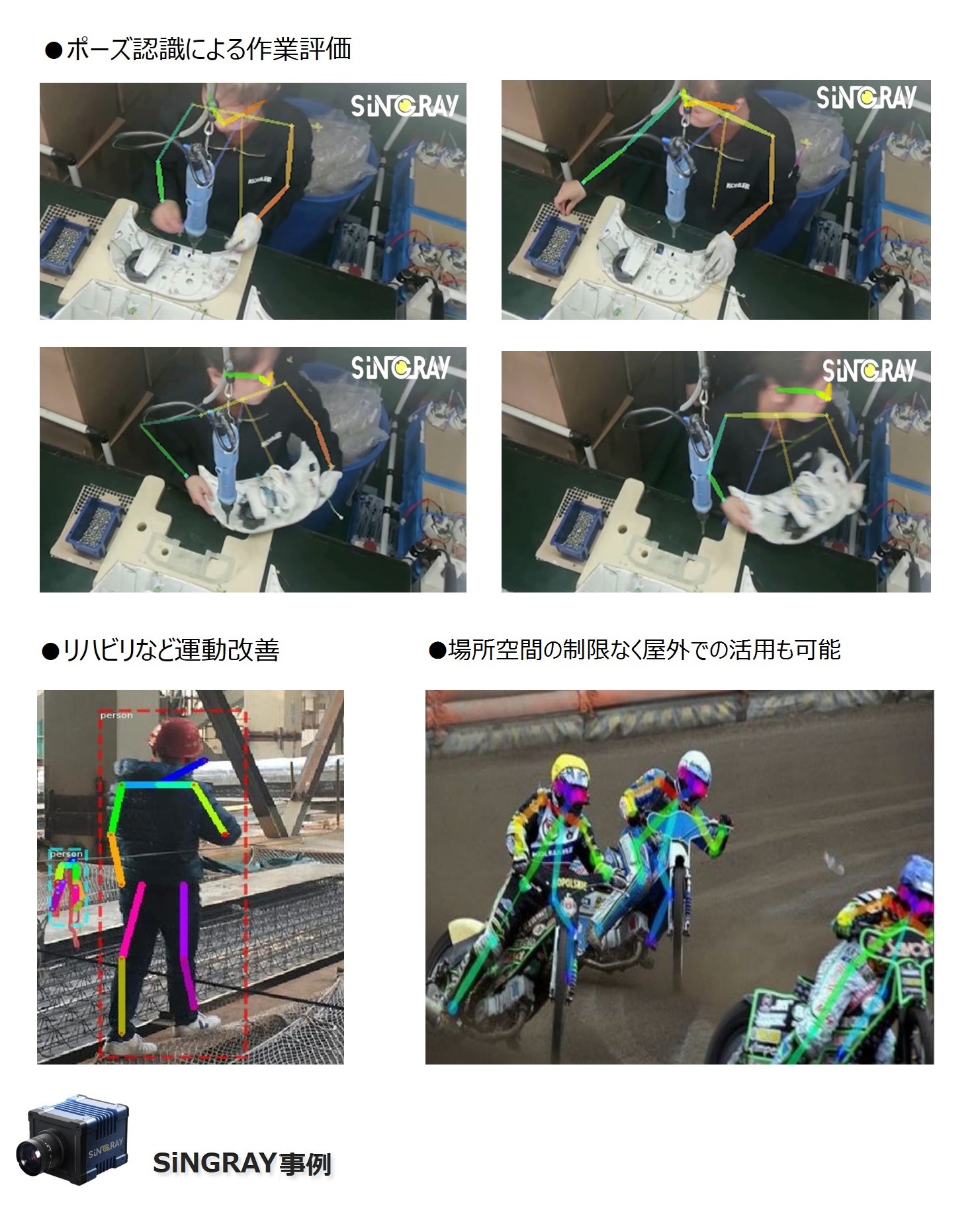 弊社取り扱いのHMS社製AIスマートカメラ「SiNGRAY」では、カメラ上でPoseNETを実行可能ですので、非常にコンパクトな構成でご利用いただけます。