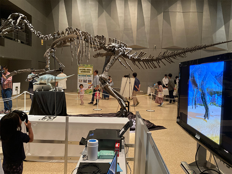 恐竜ファンはもちろん、最新テクノロジーに興味のある方にも多くご来場いただき、来場者の1/3以上が体験する人気のコーナーでした。「幅広い年齢層の恐竜ファン、共通の夢をXR技術で実現を」をテーマに掲げて展開していらっしゃるTOPPANさまにご活用いただきました。