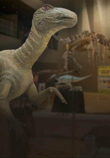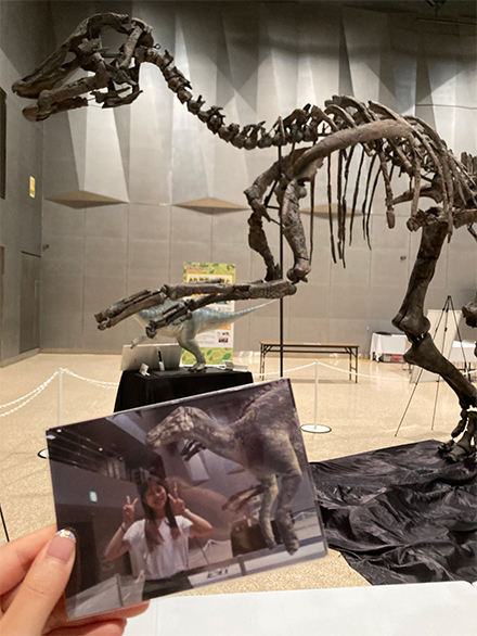 最後には、骨格標本をバックに、CGで再現された恐竜が実際の会場と一体化し、まるで同じ空間にいるかのように一緒に撮影できます。