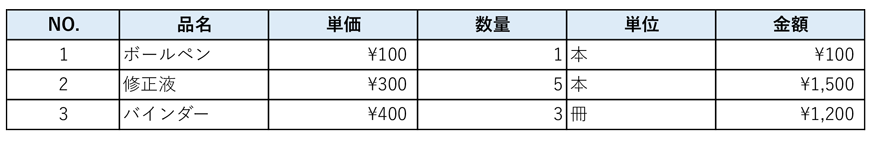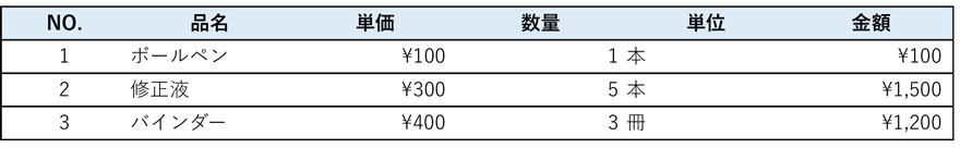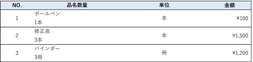 このようなデザインの場合、「No.」と「品名」、「数量」と「単位」の区切りがあいまいになり、AI-OCRでも読み取りが難しくなります。
