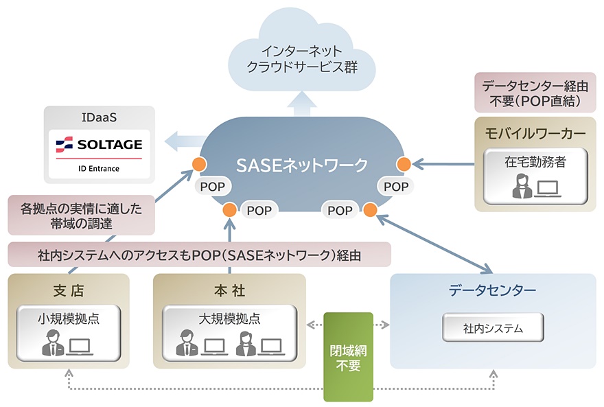 しかしSASEを利用するなら、SASEネットワークとインターネットの境界に置く=SASEに持たせることが合理的です。わざわざSASEネットワークからPOPを介してデータセンターなどのセキュリティ機器が設置された事業拠点に入り、またSASEネットワークに戻ってからインターネットに出ていくのは非効率だということが、お分かりいただけると思います。