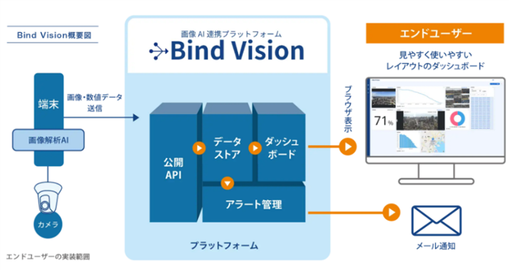 クラウド上で画像解析を行うサービスです。利用者は画像を送信するだけで解析結果をダッシュボードで確認できます。