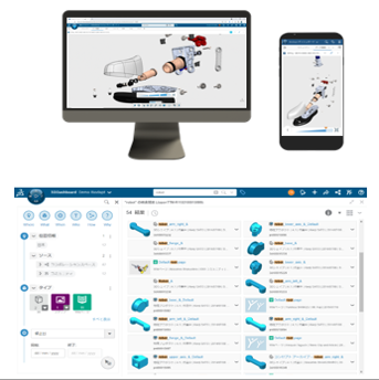 3DDriveや3DSpace等の格納領域や3DSwym等保存されたデータを検索することができます。