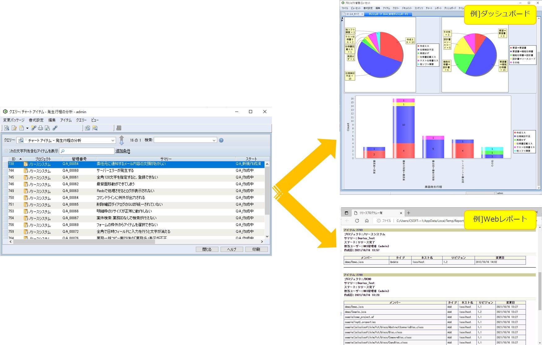 一元管理の特長を活かし、データの集計、レポートの作成などによるデータ分析ができます。