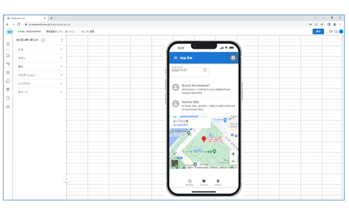 豊富なUI部品群や便利な開発エディタ機能により、デザイン性・利便性の高いアプリケーションの開発が可能です。