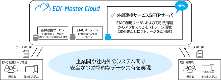 EDI-Master Cloud(以下、EMC)利用ユーザ環境、および取引先環境の双方から共通的にアクセス可能なストレージをご用意しました。