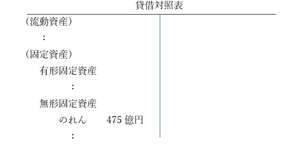 企業を買収することによって発生するのれんは、貸借対照表における固定資産の中の無形固定資産として計上されます。