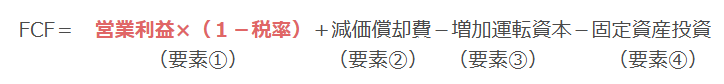 そして、フリーキャッシュフローに最も大きな影響を与えるのが、要素①の税引き後営業利益です。