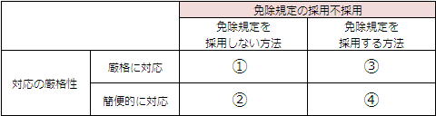 ② 免除規定は採用しないが、一部論点については厳格対応をしない方法