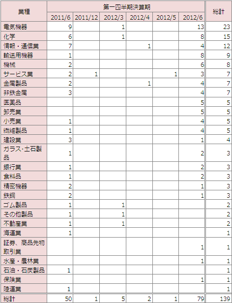 また、前年からの動きとしては、輸送用機器が1社から9社に急増し、医薬品と卸売業は、0社から5社に急増しています。