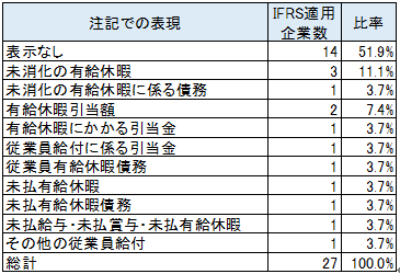 後からIFRSを適用する企業ほど、有給休暇に関して該当がないか重要性がないと判断されているように感じます。