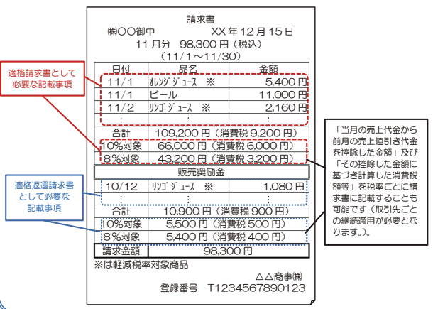 (適格請求書を交付した売上げに係るものについては、課税期間の範囲で一定の期間の記載で差し支えありません)