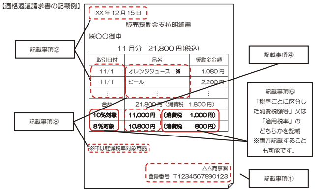 (売上げに係る対価の返還等の基となる課税資産の譲渡等が軽減対象資産の譲渡等である場合には、資産の内容及び軽減対象資産の譲渡等である旨)
