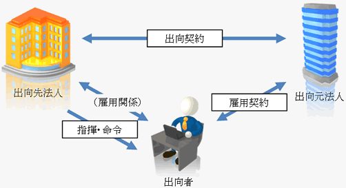 出向とは、従業員が自己の雇用先の企業(出向元法人)に在籍したまま、子会社や関連企業などの他の企業(出向先法人)において、長期間にわたりその出向先法人の業務に従事することをいいます。出向については、①出向者の給与負担 ②出向先で役員となっている場合の役員給与の2点の取扱いについて、特に注意が必要です。