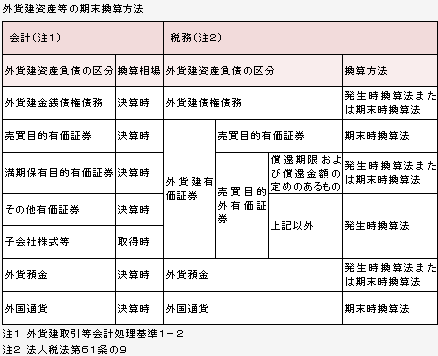 外貨建資産・負債については、金融商品会計基準の時価評価の適用に合わせ、期末換算規定が定められています。