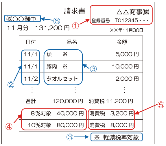 適格請求書への記載事項