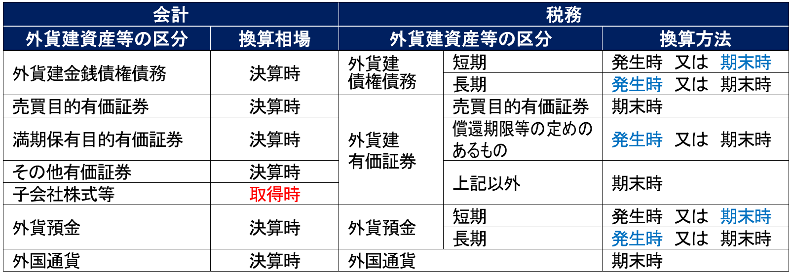 【会計と税務における外貨建資産等の期末換算方法】