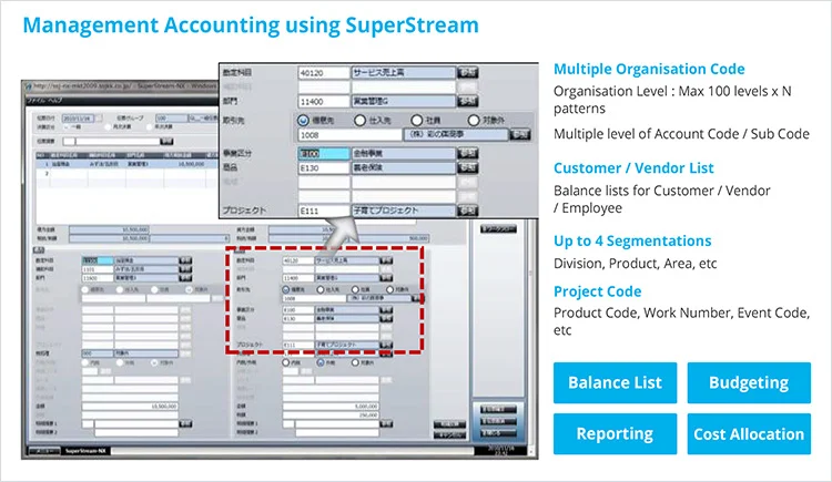 Support Multiple Organisation, Customer/Vendor List, Segmentation, Project Code which is essential for management accounting purpose