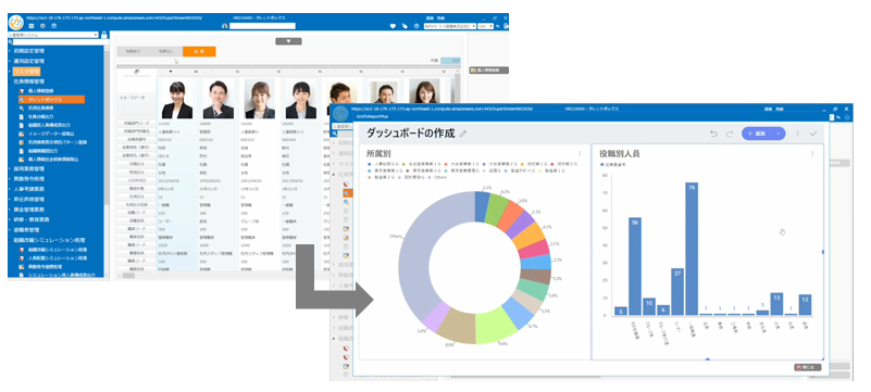個社単位に蓄積された財務・人事/給与データを、様々な表現方法で分析し結果を共有できる簡易BIツールを、標準機能として搭載しました。