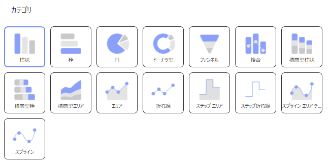 グリッド集計結果は折れ線や円チャートなど多様なグラフに変更可能