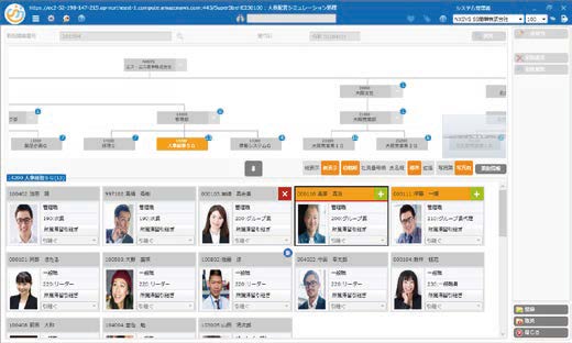 新組織案・人事異動案を、視覚的(直観的)なシミュレーション上で複数案設定し、適切な組織・人員配置の検討に活用することが可能です。また、決定内容を一括で発令・決裁処理へ連携させることが可能なので、人事担当者の負荷を大幅に軽減します。