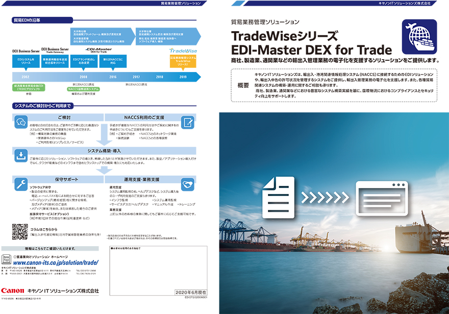 - キヤノンITソリューションズがご提供する貿易ソリューション製品全般のご紹介です。NACCSに接続するためのEDIソリューション、輸出入申告の許可状況を管理するシステムを提供し、輸出入管理業務の電子化に貢献します。