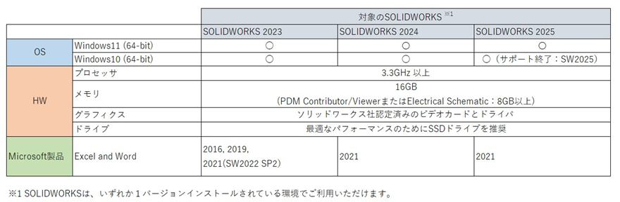 1端末でSOLIDWORKSが1バージョンインストールしている環境下で稼動します。