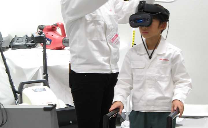 その中で、本田技研工業株式会社(Honda)さまのコーナーにて、MR(Mixed Reality)の技術を使い、パワープロダクツ製品(除雪機)の性能を確認し、改善提案を考える「商品の研究開発の仕事」プログラムの中で、キヤノンのMRシステム「MREAL」をご活用いただきました。