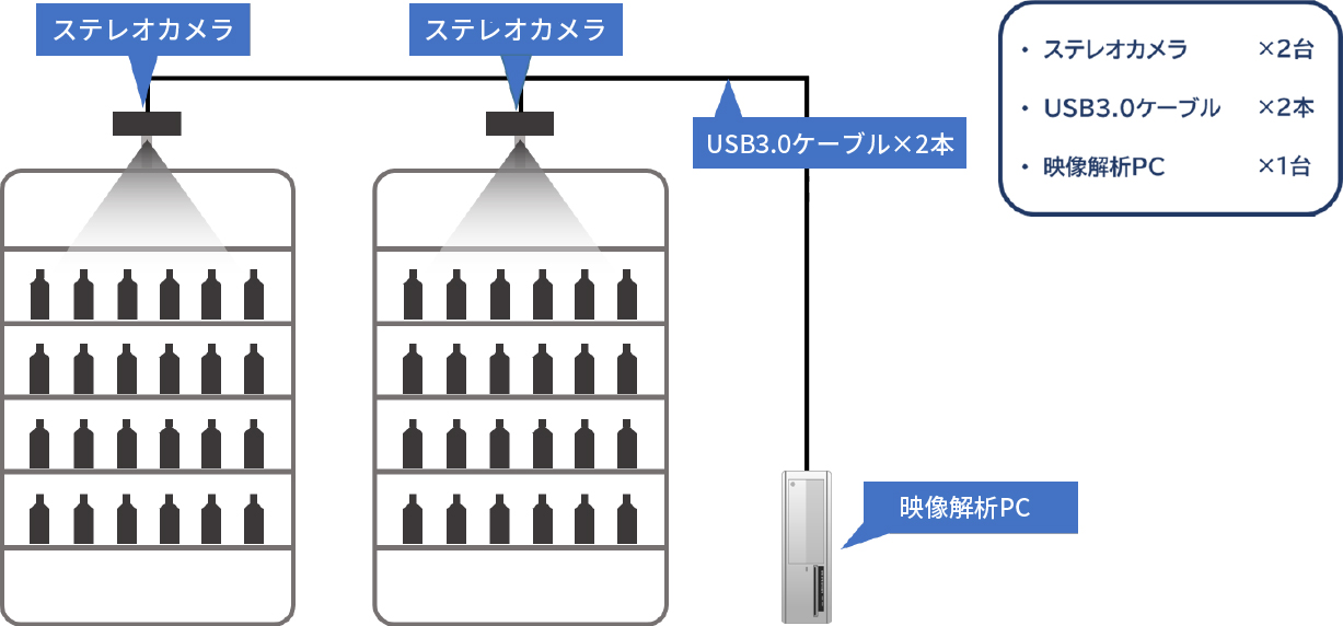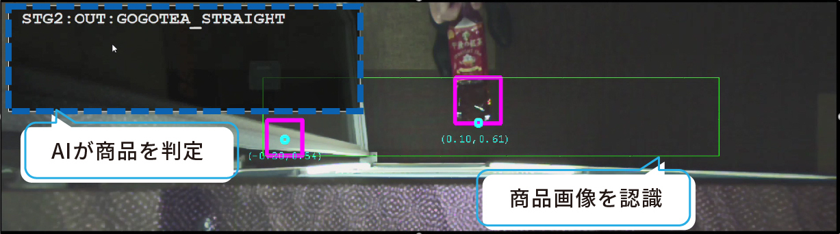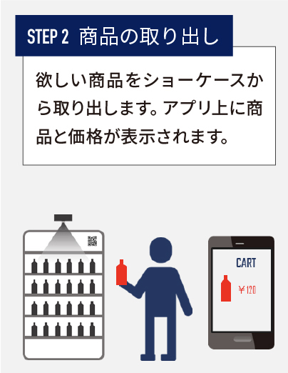 ショーケースに取り付けたカメラで消費者が商品を取り出す瞬間の動作を認識し、AI画像解析により商品の種類を特定します。