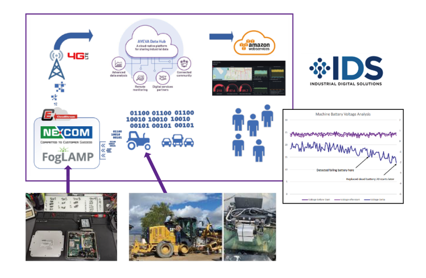 - エッジデバイスにFagLAMP利用し、4G LTEでAVEVA CONNECTへデータ送信