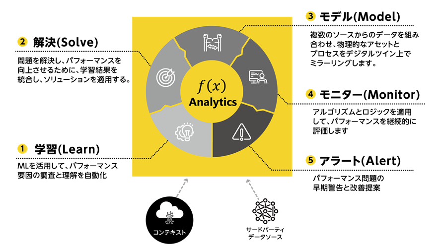 収集したデータをAIや分析モデルを使用して、運用支援、工程最適化、予兆保全に活用することができます。