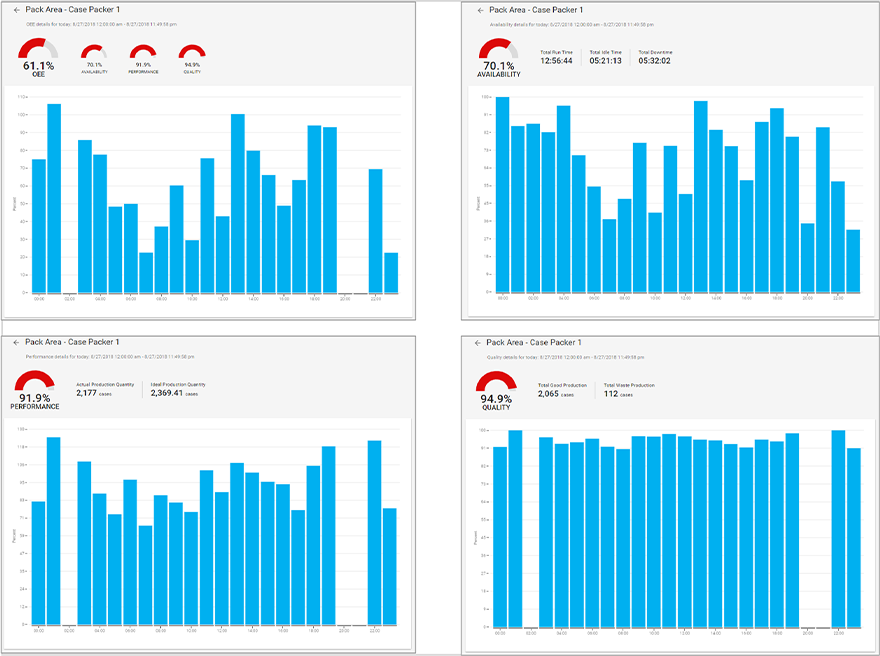 - OEEを長期的に監視することで、製造オペレーションの基盤として使用できる情報を得ることができ、生産量の増加、オペレーション効率の改善、費用対効果の向上を実現することができます。
