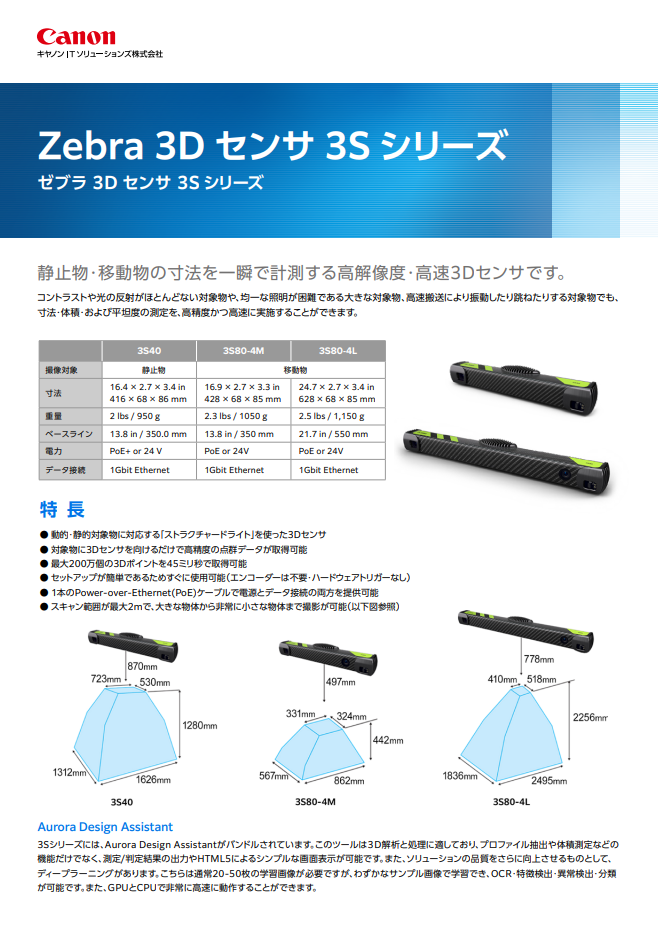このページではZebra Technologies社「ZEBRA 3Dセンサ 3Sシリーズ」のカタログ・リーフレットを、PDFファイルでご覧いただくことができます。