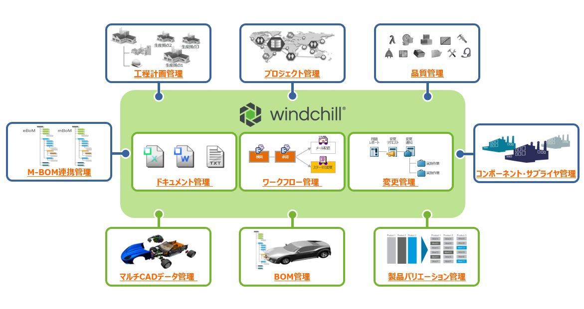 Windchillは、製品ライフサイクル全般にわたる開発情報や開発プロセスを一元管理するPLMパッケージです。