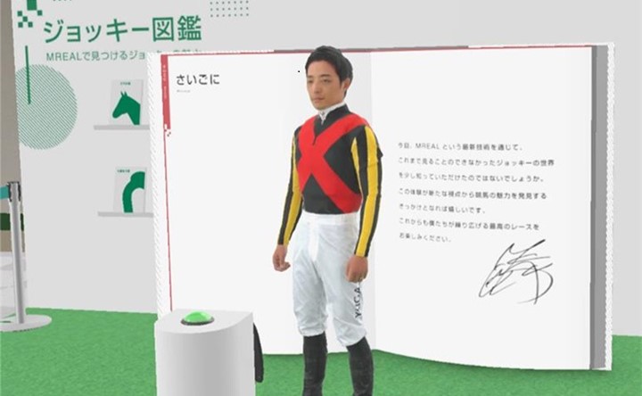 <XR×ジョッキー(騎手)>みんなで見つけましょう。近年、JRAではレース中の騎手目線を体感できる「ジョッキーカメラ」や、走行中の各馬の位置関係をリアルタイムで表示する「トラッキングシステム」など、映像サービスの進化に力を注いでいます。