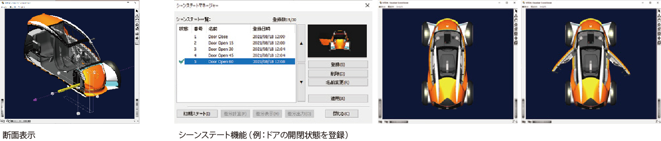 また、接触判定対象を事前登録してシーン毎に切り替える機能、接触の痕跡を記録する接触時カラーマスクモデル登録・出力機能など、接触判定をサポートする機能も充実しました。