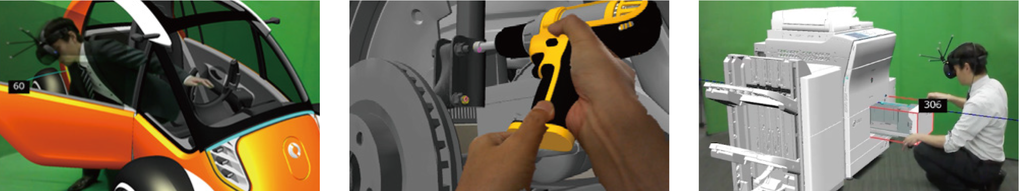MREAL Visualizerは現実映像に3D-CGを表示する専用ソフトウェアです。MREAL Display装着者の位置姿勢計測情報を元に、現実映像に3D-CGを合成します。