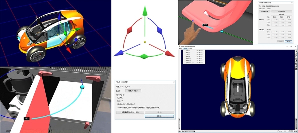 また、より現実に近いオブジェクトの動きを手早く設定するため「ドラッガー中心設定」「ノード移動範囲・回転範囲設定」の各機能を強化しました。