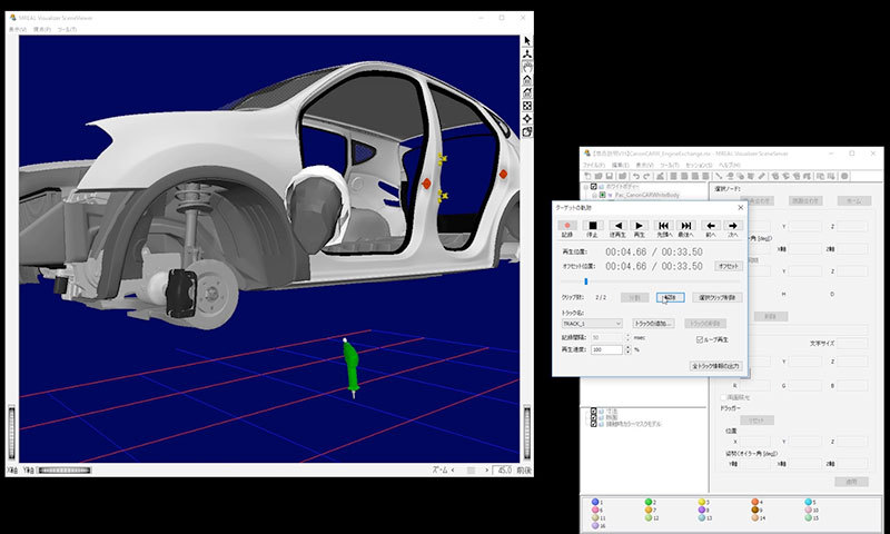 オブジェクトの制限移動軸や回転軸を事前に編集指定する機能を備え、CGデータの挙動を現物に近づけて忠実な検証を可能にしています。